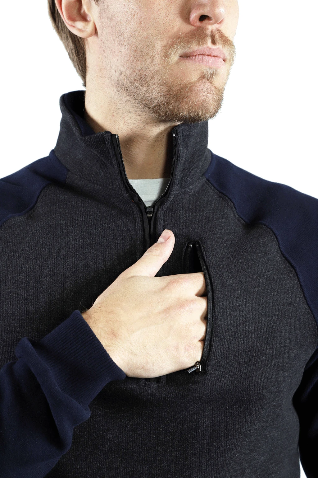Introducing the Polaris 1/4 zip with a charcoal base and beautiful color blocking on the sleeves and hem. It also boasts zippered pockets on the chest and at the sides, not only allowing for optimal functionality and storage capacity, but also versatility. Whether you’re throwing it on while you work from home, or for one of chilly days on the golf course, Polaris knows no bounds! no Our new quarter zip collection is also baby ribbed, which brings about an added element of texture, yet still smooth to the touch.
