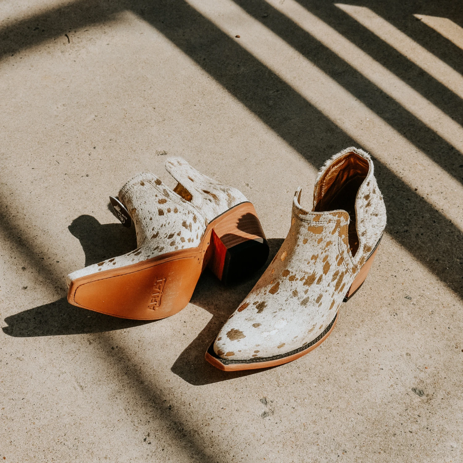 Ariat’s Dixon Haircalf boot adds wow to every outfit with fun patterns, rich texture, and patented Ariat comfort technology. The gorgeous low-cut silhouette is enhanced by a sculpted, stacked heel. Side slats for easy on/off offer a pristine example of fashionable function.