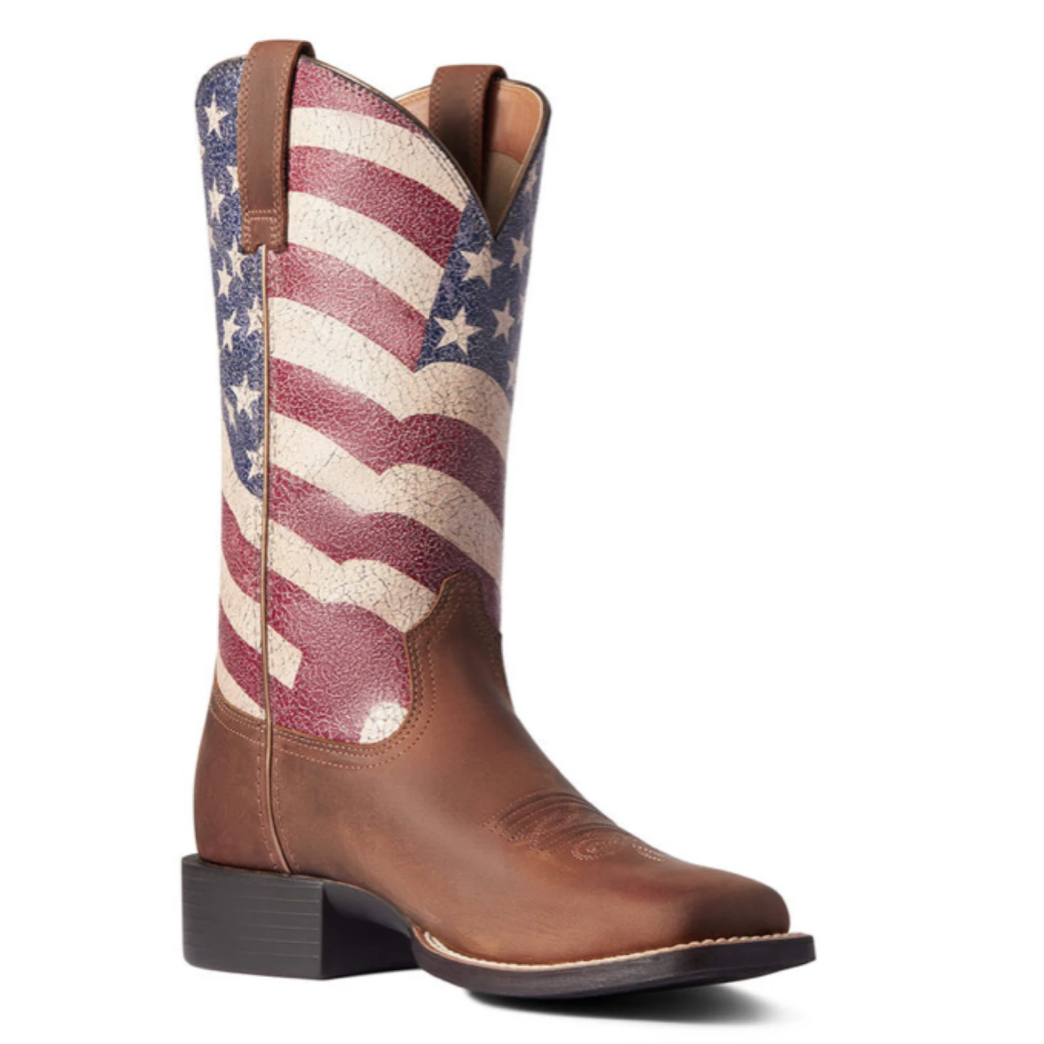 Show pride while you ride. These boots feature an American flag in supple crackled leather, plus innovative comfort technology for all-day wearability.