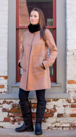 Bergen Of Norway Kari Cashmere Coat in Red. ReversibleĀ to a stunningĀ sand color.Ā AĀ sensationĀ of world renowned comfort and elegance born from meticulous Italian craftsmanship. Slip into a luxurious dreamland of Mink and the exclusive Loro Piana Cashmere with the Kari Coat by Bergen of Norway.Ā