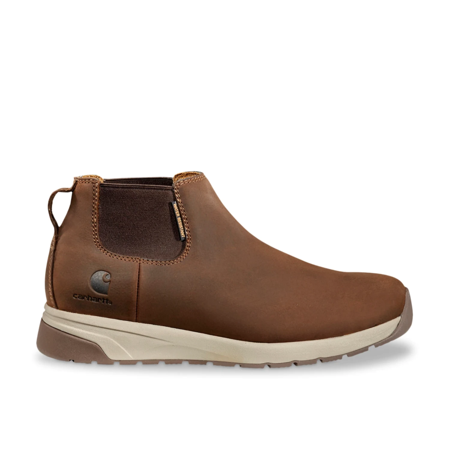 A tough, versatile work boot with plenty of lifestyle appeal. These men’s Carhartt Chelsea boots keep your feet dry from rain while letting sweat out. Designed to meet ASTM 2413-18 standards, the nano composite toe is lightweight without compromising on strength. With less weight in the toecap, the boot feels more balanced and comfortable over the long haul.