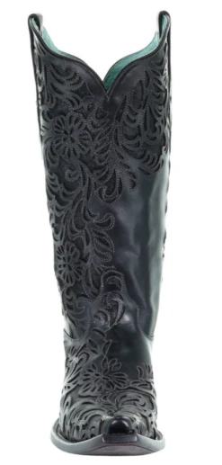 This top seller Corral is a classic black western boot with a fashion forward style. With a floral full inlay design these boots will keep you stylish and comfortable all day long.