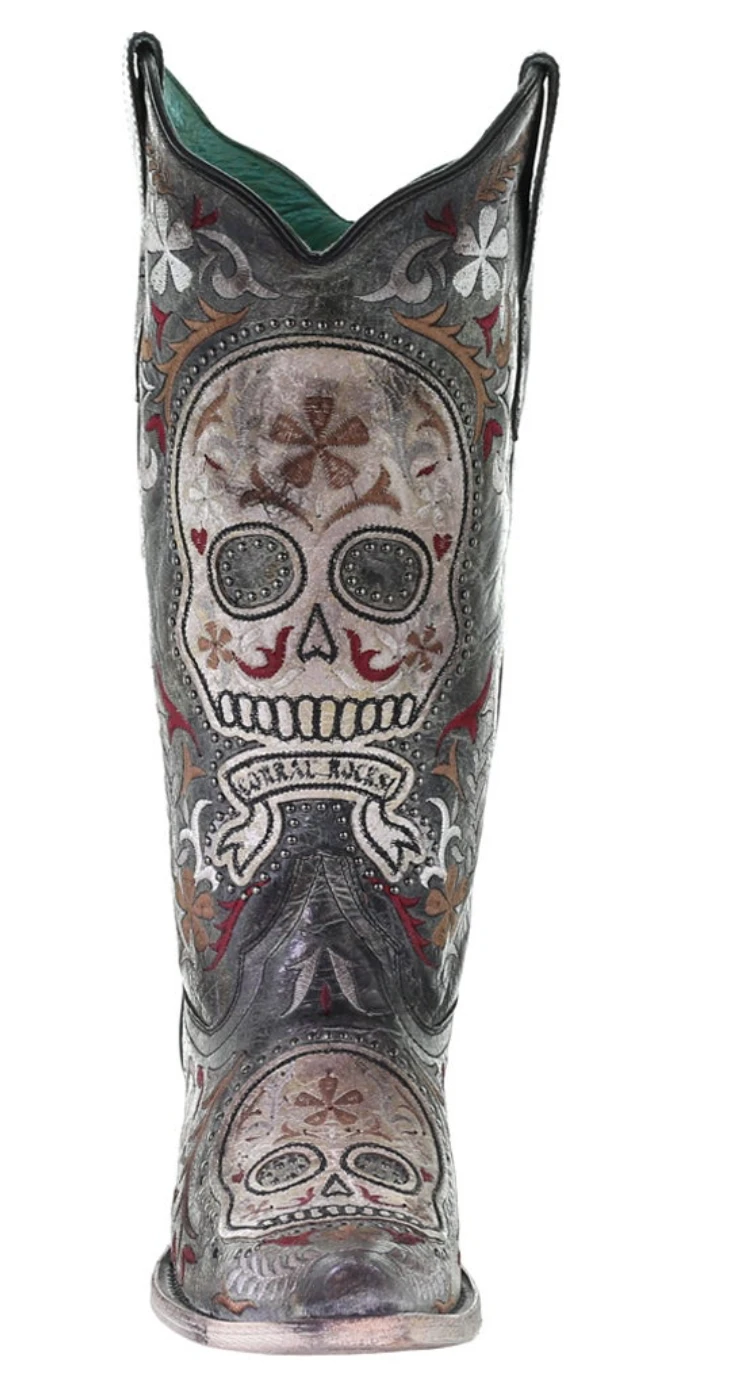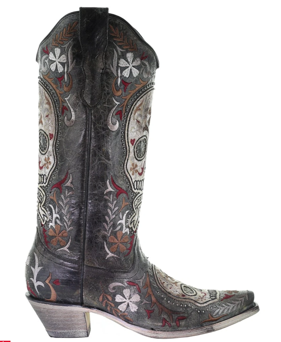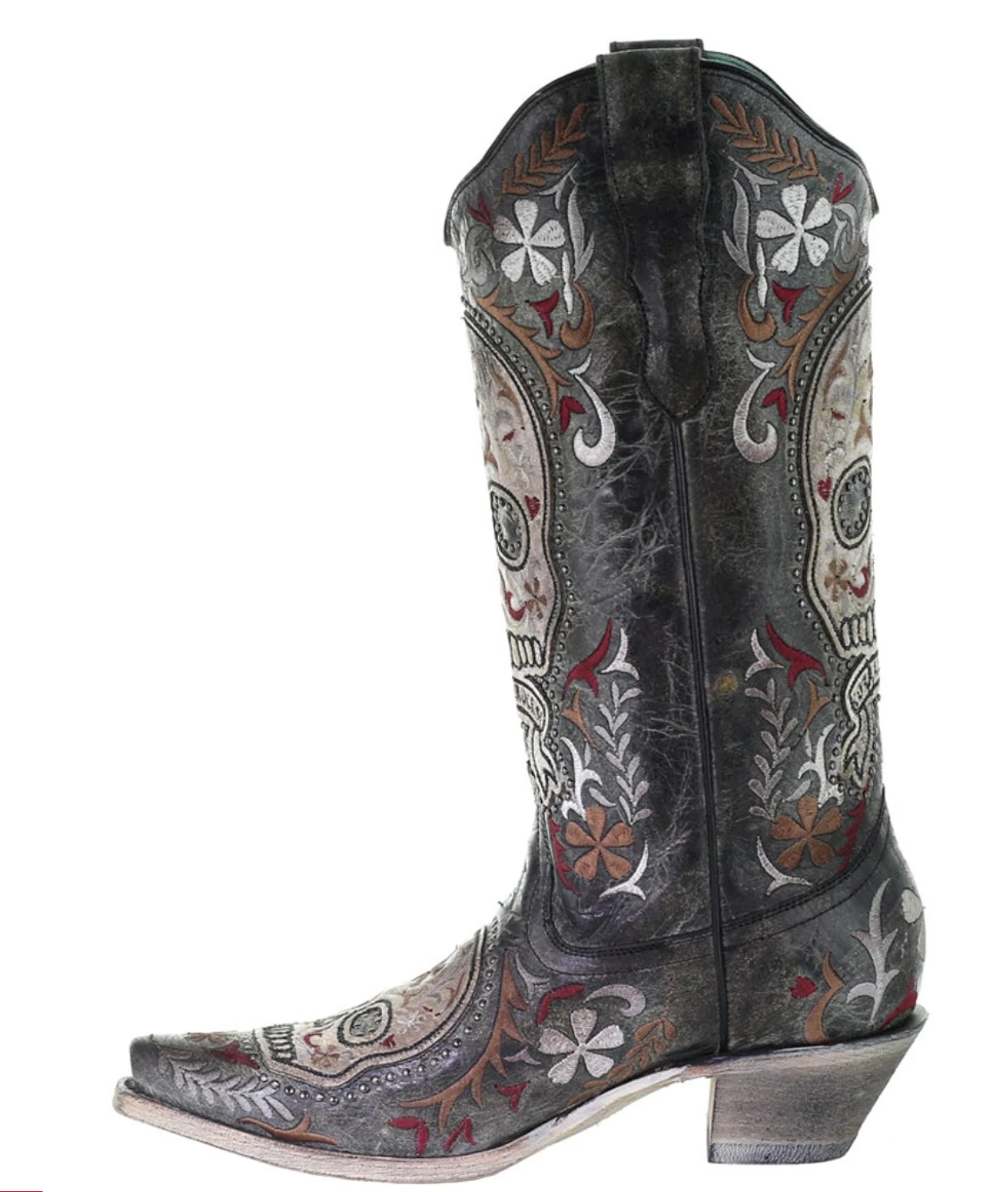 These Corral top seller boots will have you looking fashionable and keep you comfortable. With the floral and skull embroidery design these boots will bring out your inner fashionista. These boots look stylish and match every style. Once you try a pair of these Corral boots you will be hooked.Â