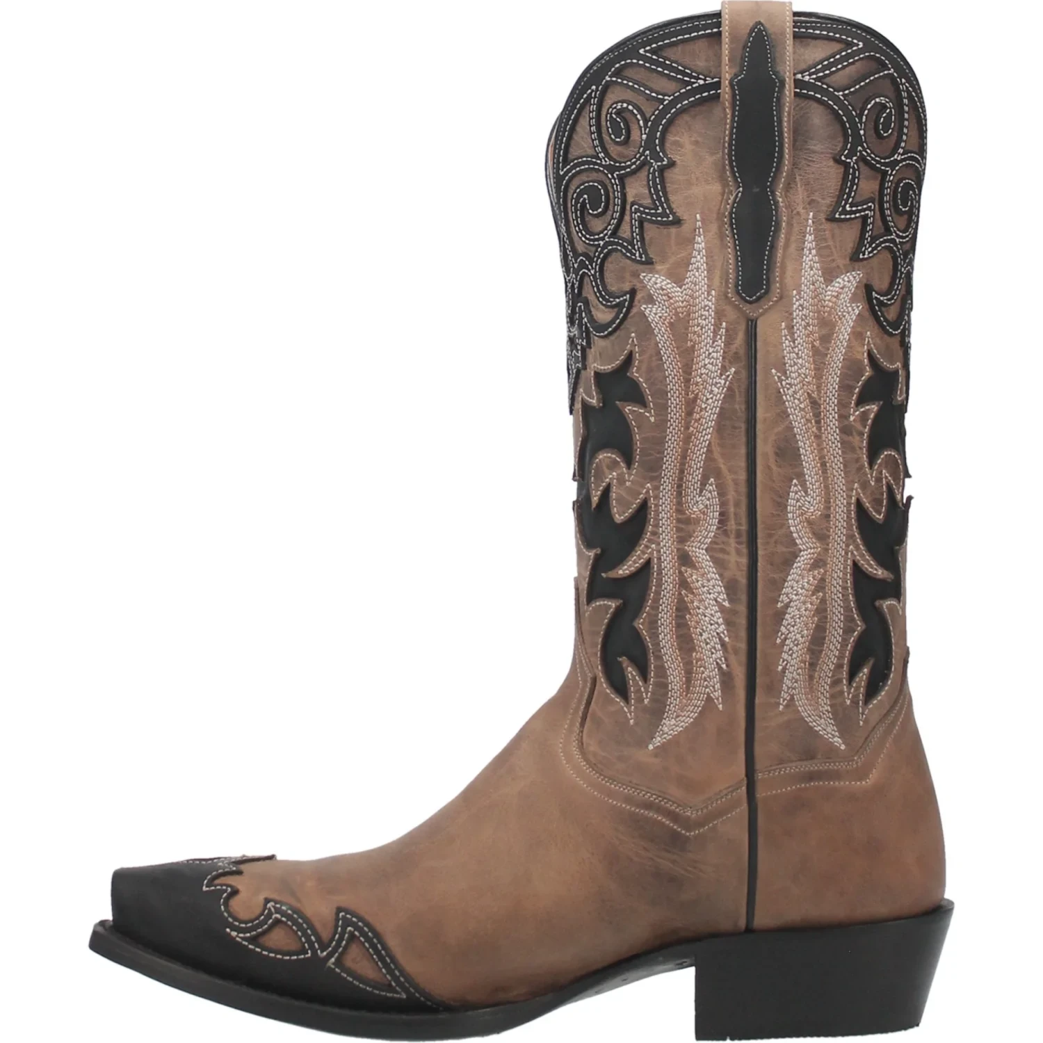 The Denton is more than a traditional western boot. Features unique overlay designs on the toe and collar. The shaft is further accented by tonal underlays. A lot of detail in a beautifully handcrafted boot. Features snip toe, cowboy heel, Soft Strike Orthotic and leather outsole.