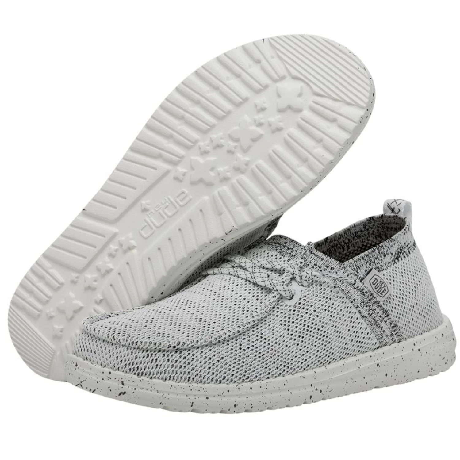 Utilizing recycled fibers and inspired by Hey Dude’s iconic moc, the Wendy Halo collection gives you a soft and breathable shoe to start any new adventure with all-day comfort and confidence. Featuring Hey Dude’s easy-on system with cotton laces and an ultralight outsole for easy-wear. Breezy and lightweight, your feet will thank you later.Â