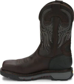 Equipped with comfort, protection, and security friendly for the most rigorous tasks and environments, the 11″ Warhawkâ„¢ Nano Composite Toe, Non-Metallic pull-on work boot features Puncture-Resisting technology and is Electrical Hazard Rated to meet ASTM F2413-11, I75, C75 EH PR standards. The nano comp square toe feature helps to protect the toes from the weight of heavy loads, and the Vibram® Commander outsole, resistant to heat, oil, chipping, chemicals, and slipping provides stability and durability. Waterproof leather and full bootie construction team up to keep feet dry, and the Ortholite® comfort insole inside delivers all-day support.