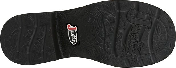 A modern take on the traditional cowgirl boot, the 11″ tall Inji Aged Bark Justin Gypsy Women’s cowboy boot is a must-have. Its rich mahogany leather exterior is embellished by a simple ivory and rust stitch pattern and is subtly accented by a white seam along the quarters and collar. The signature round toe and unit heel provide an easy fit and the J-Flex Flexible Comfort System insole with removable orthotic inserts add cushion and support.