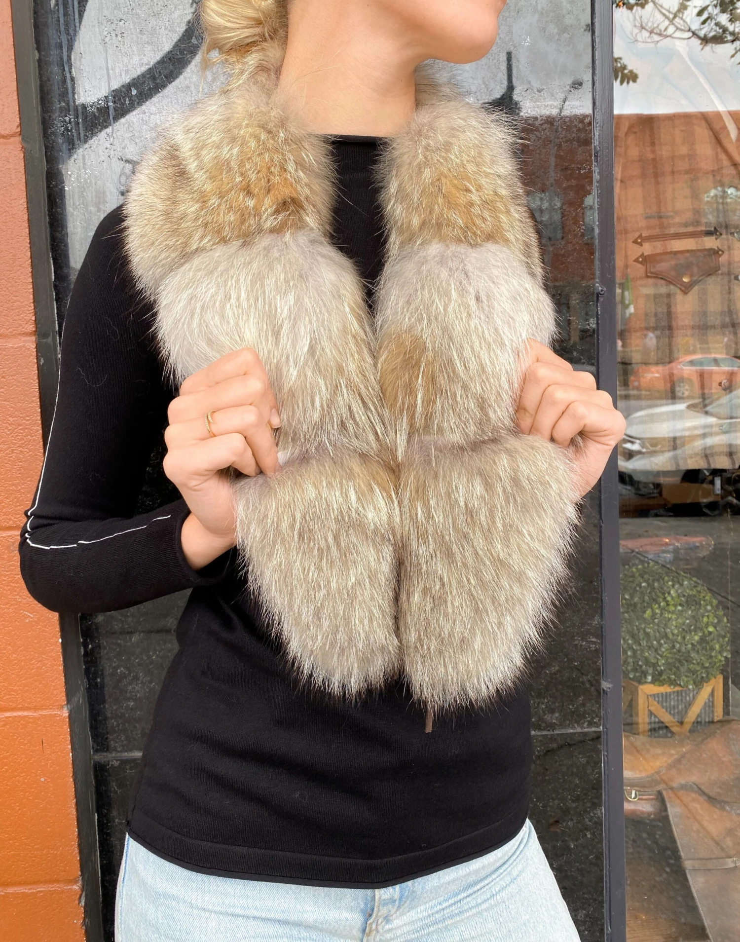 M.Miller Coyote Cross Cut Shawl Collar is all natural coyote.Â
