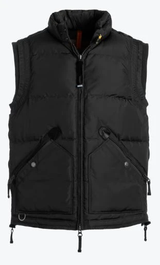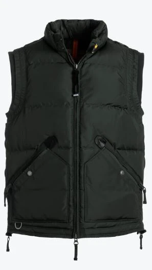 The fabric is a 100% recycled nylon oxford with fabric protector treatment and inner polyurethane lamination. Filling is 90% duck down – 10% duck feathers. This vest has a two-way zipper. It features two zippered and snap flap pockets and two inner mesh pockets. Zippered side slits and ribbed armholes. It features iconic details such as the yellow elastic strap and the patch.