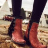 Women’s waterproof rubber rain boots you can comfortably wear all day, thanks to the internal shank system, cushioned, removable insoles and breathable, moisture-wicking linings. Constructed of premium rubber with no-slip soles featuring our Mountain Majesty tread. Pull tabs allow for easy on and off.